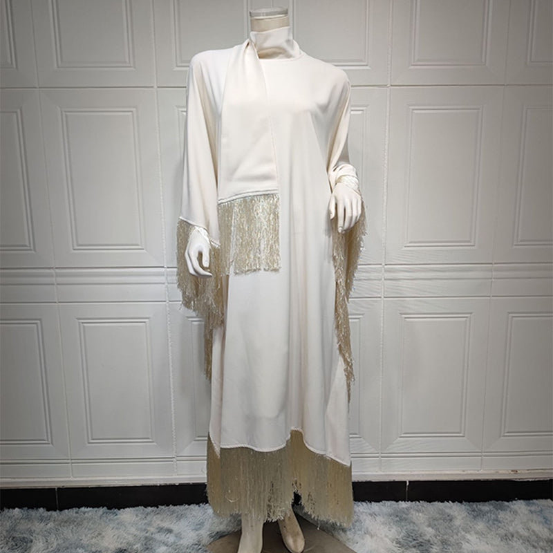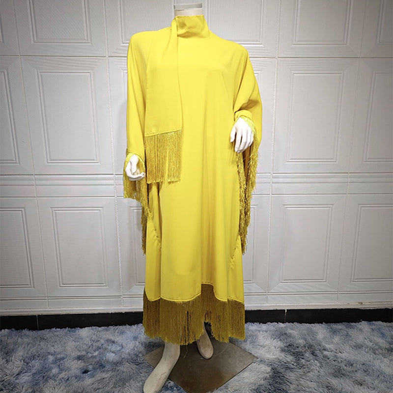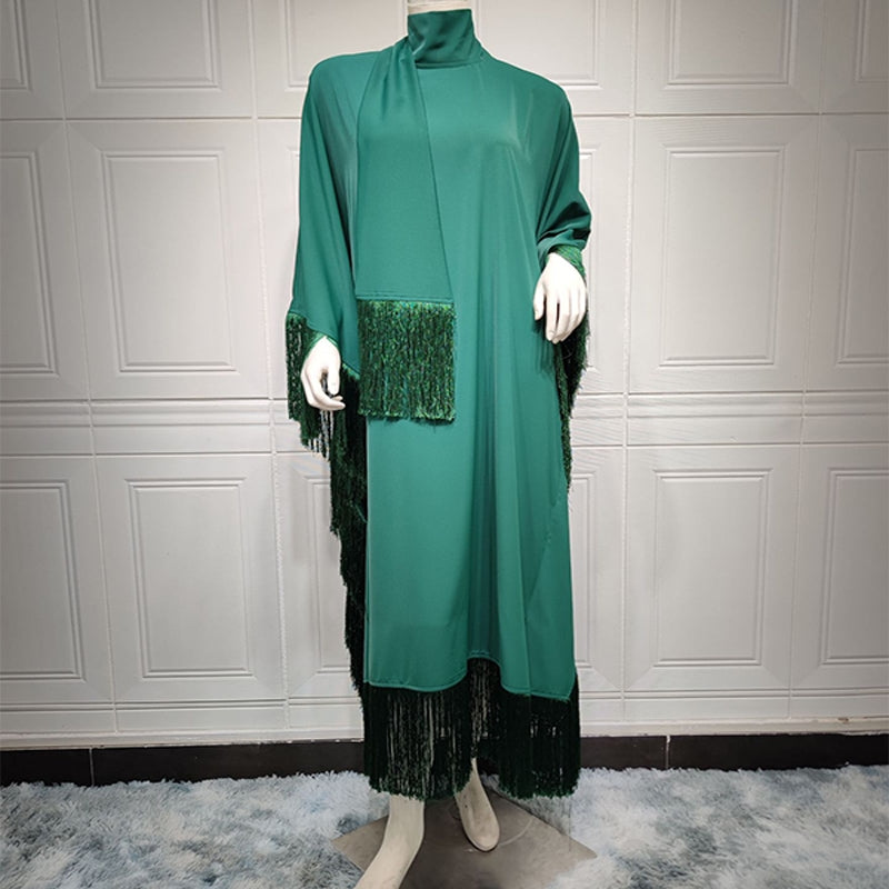 মার্জিত ব্যাটউইং স্লিভ ট্যাসেল কাফতান ড্রেস | মার্জিত পার্টি গাউন