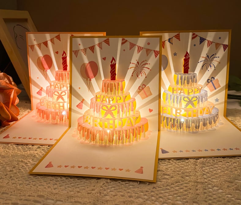 3D Pop-Up Birthday Card with Colorful Music & LED Lights