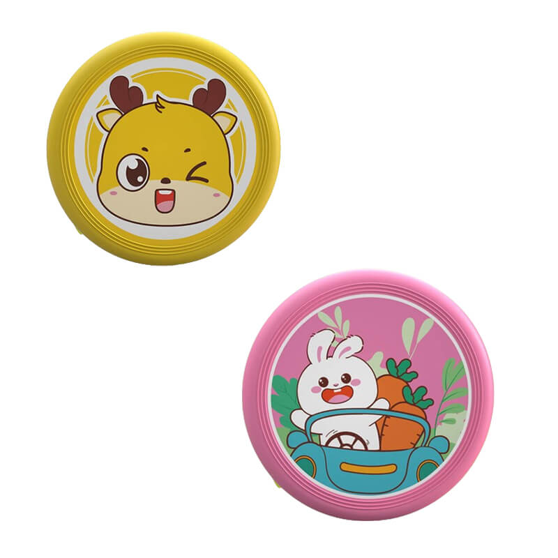 Welcome spring with outdoor fun! Get kids away from screens with our soft rubber frisbee. Cartoon graphics, safe material, 7.9" diameter, 0.79" thickness, perfect for kids. Just throw and catch for endless fun!