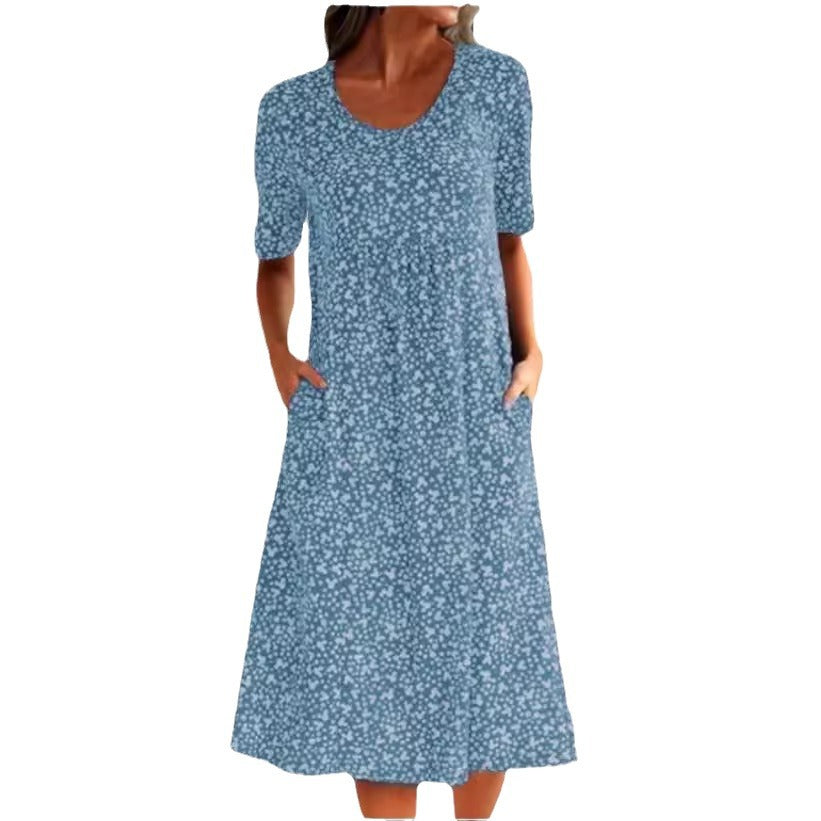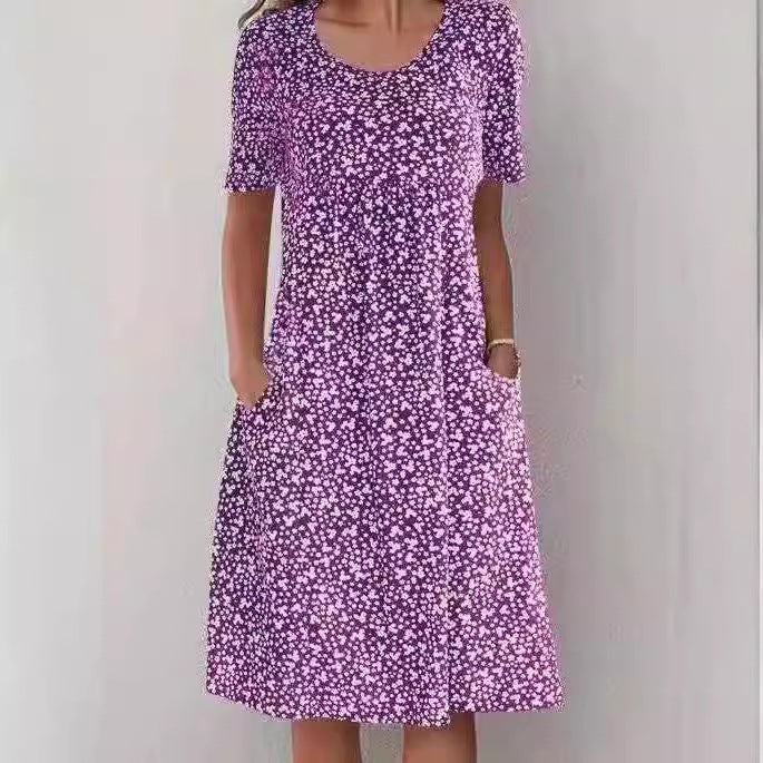 Casual Women Scoop Neck Floral Dress (8 Colors with Pockets)