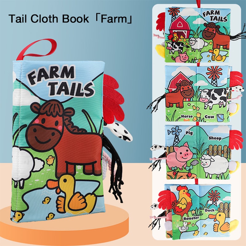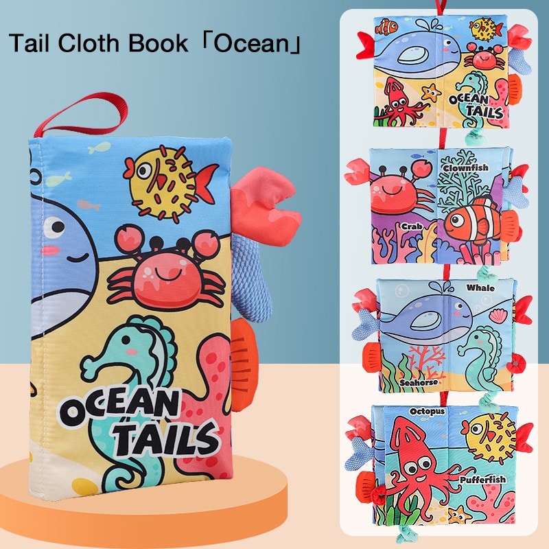 Baby Tail Cloth Book, Tear-Resistant Book with Crinkle Paper, Early Learning Toy