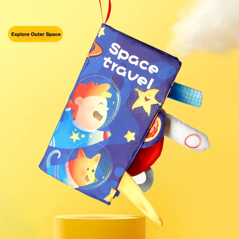 Stimulate your baby's senses with this 3D fabric book featuring crinkle paper, perfect for early learning, play, and developing motor skills.