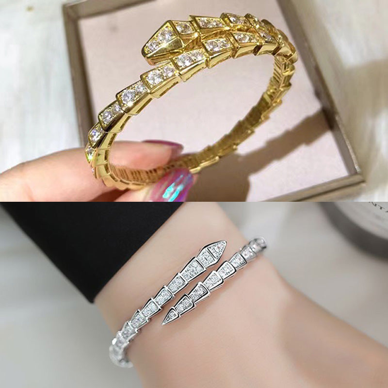 Exquisite Snake-shaped Full Diamond Bangle For Women