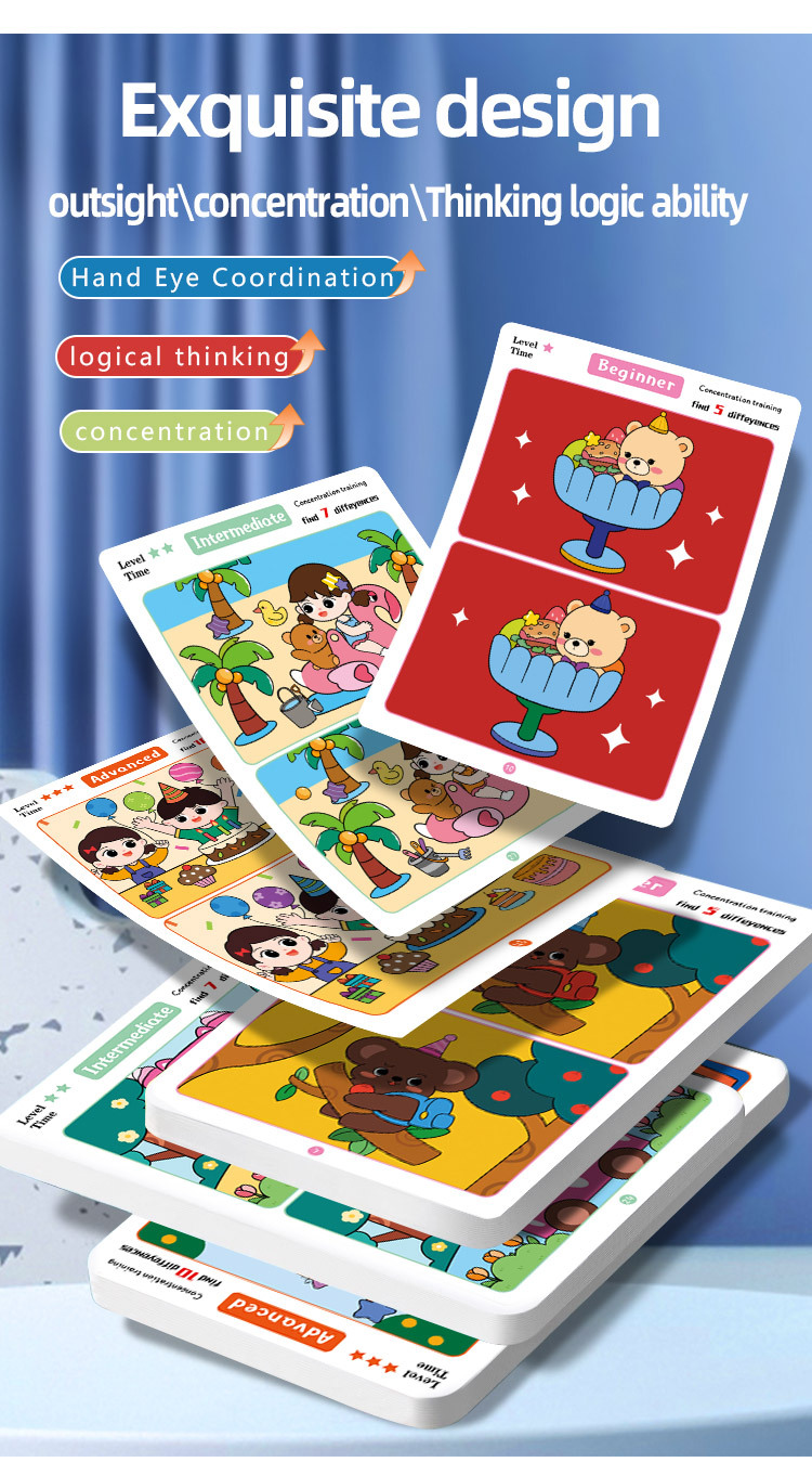 "Find the Difference" Cartoon Game Cards For Children, 64 Pcs,Children's Thinking Training Picture Book