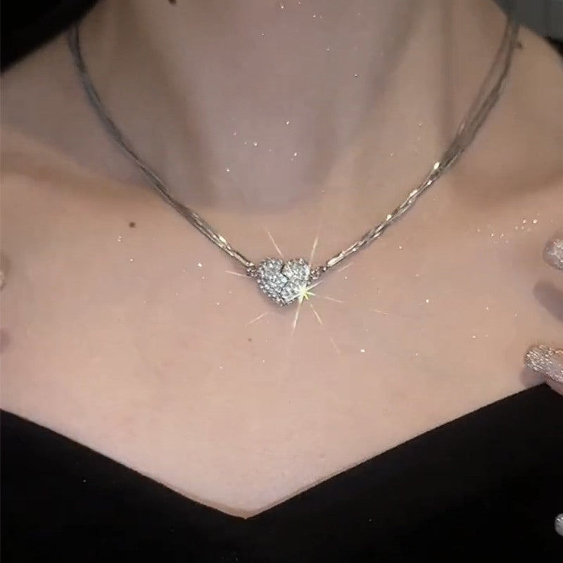 Magnetic Love Patchwork Necklace – A romantic couple’s accessory with heart-shaped magnetic charm. Perfect for gifts, anniversaries, and daily wear.