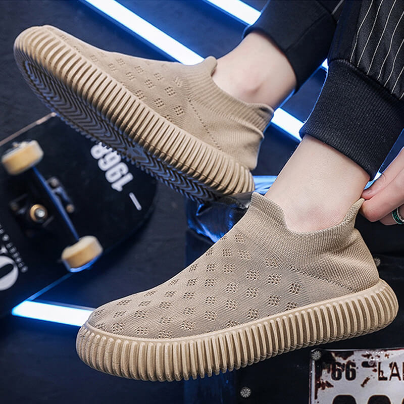 The shoe upper is made of breathable mesh, ensuring excellent ventilation and comfort, while the lightweight material makes walking effortless.