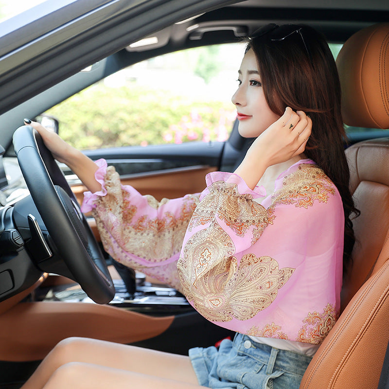 These women's sun protection sleeves are made from ice silk and chiffon, offering a lightweight, breathable, and cool feel for summer wear.