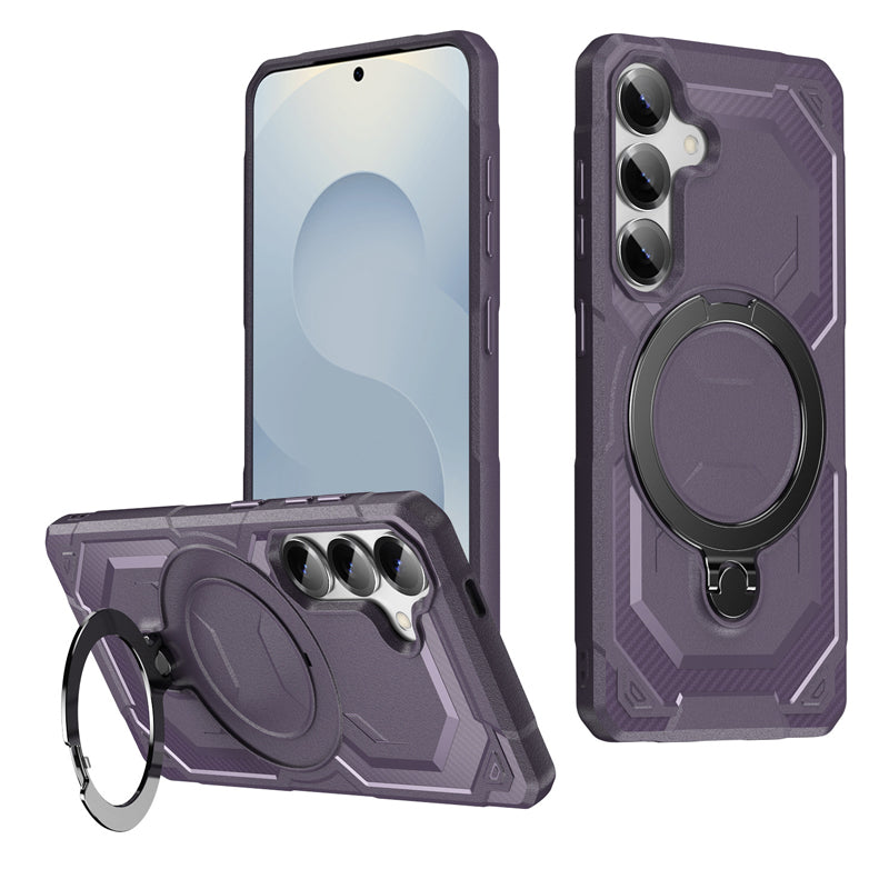 This Samsung shockproof phone case is designed to offer premium protection and functionality. Made from durable materials, it provides excellent shock absorption to protect your phone from accidental drops and impacts. The built-in magnetic kickstand feature allows for hands-free viewing in both portrait and landscape modes, making it perfect for watching videos or video calls.