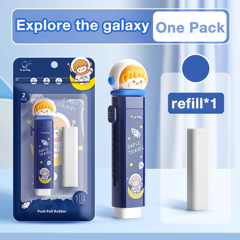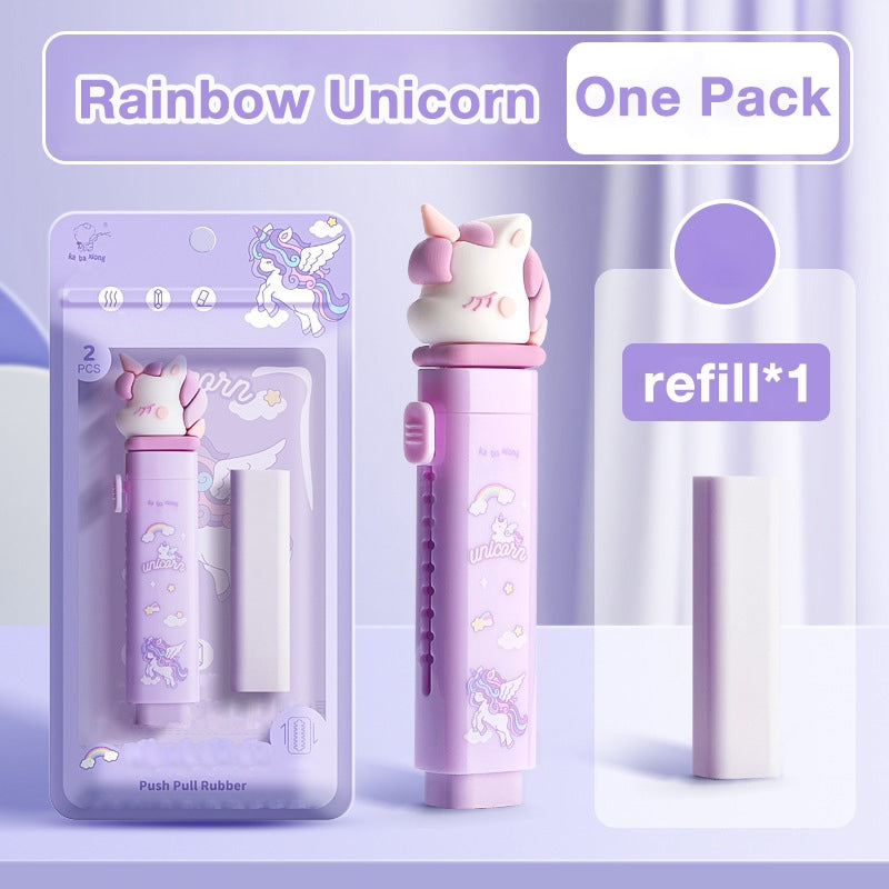 Fun and creative cartoon push-pull eraser for students. Easy to use, minimal shavings, and cute designs make erasing enjoyable!
