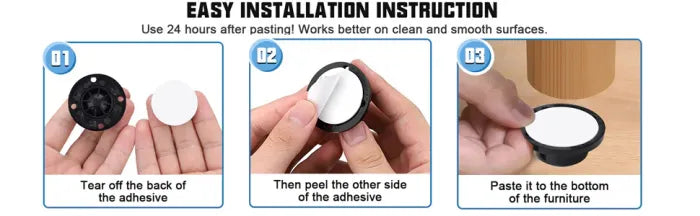 The adhesive forms a strong bond, so even if the wheel rotates 360°, the wheel can remain in place for smooth movement in corners and narrow spaces.