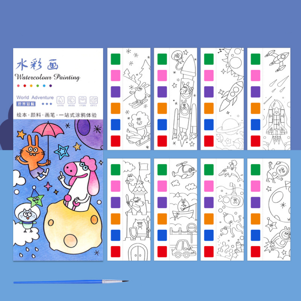 Watercolor Coloring Bookmarks for Kids, Drawing and Coloring