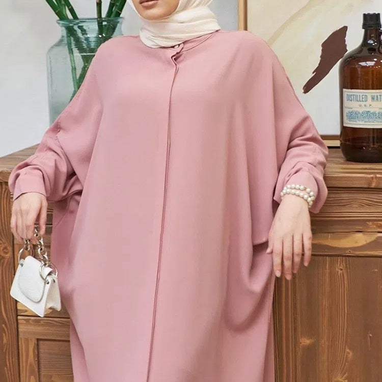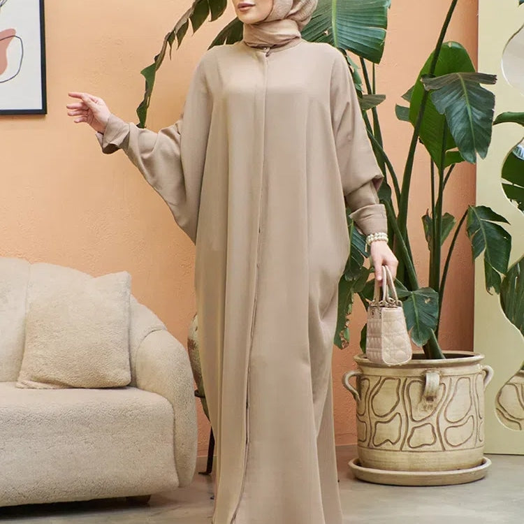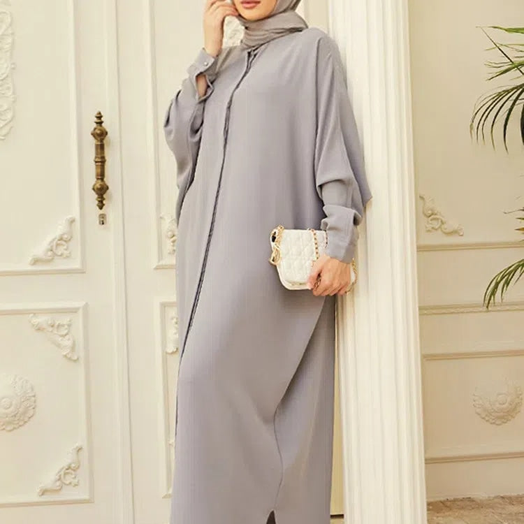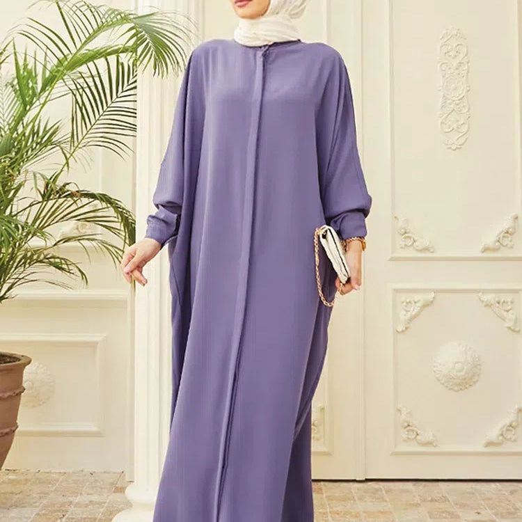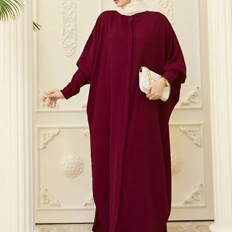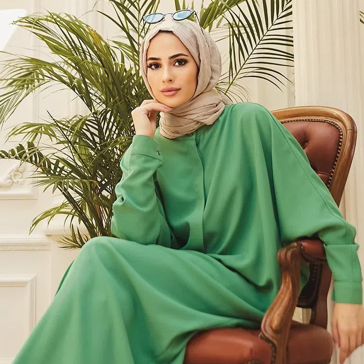 Women's Solid Color Batwing Sleeve Long Abaya Dress
